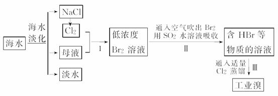 (4)步骤Ⅱ用SO2水溶液吸收Br2,吸收率可达95%,有关反应的离子方程式为______________________,由此反应可知,除环境保护外,在工业生产中应解决的主要问题是______________________。