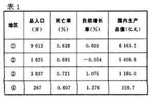 表1为2002年我国四个地区人口的相关数据,据此完成3-4题。