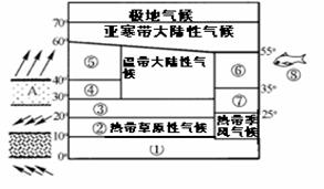 气候类型⑤分布的一般规律是 (要说明纬度位置和海陆位置)。