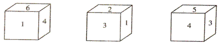 7、有一正方体,六个面上分别写有数字1、2、3、4、5、6,有三个人从不同的角度观察的结果如图所示.如果记3的对面的数字为m,4的对面的数字为n,那么m+n的值为 ( )