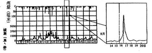 17、(安徽蚌埠09届高三第一次教学质量检查)下图为我国某地某年河流实测流量和降水量,读图回答下列三题。