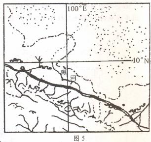 18、黑河是仅次于塔里木河的全国第二大内流河。黑河尾闾处的居延海,曾是西北最大的湖泊之一,孕育了古居延文明。近年来,居延海急剧萎缩干涸,生态环境不断恶化。读图5,回答下列二题。