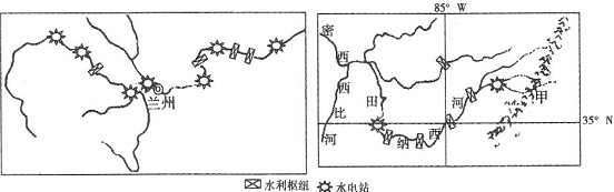 (1)从图中可知,田纳西河与黄河水能资源开发的共同特点是_______________。田纳西河水资源之所以能够这样开发的原因是 。