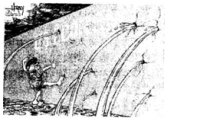 5.近日有一幅反映当前金融海啸的图片引起了众人的关注,它的名字为《挡》,借水手巧妙达意。请为其拟写解说词,要求至少运用两种修辞方法,能揭示画面的内涵。(不少于50字)(5分)[摘自金华一中2010届高三12月联考]