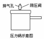 20.(07上海)有一压力锅,锅盖上的排气孔截面积约为7.0×10-6 m2,限压阀重为0.7 N。使用该压力锅煮水消毒,根据下列水的沸点与气压关系的表格,分析可知压力锅内的最高水温约为(大气压强为1.01×105 Pa)