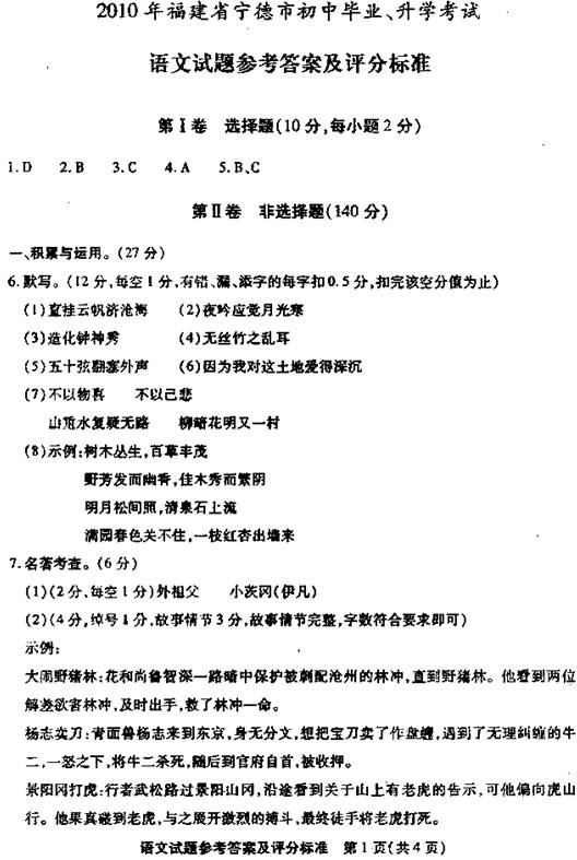 (8)沙尘肆虐之下,人们对蓝天碧水、茂林修竹的珍爱愈加强烈,请借用古诗文的句子表达你心中理想的自然环境“ , ”。(课内外均可)