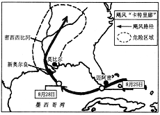 据美国全国广播公司报道,当地时间8月29日清晨6时10分,飓风“卡特里娜”裹胁狂风暴雨在美国墨西哥湾沿岸登陆,登陆时风速达到了每小时145英里(约233千米),淹没路易斯安那州新奥尔良市的数个居民区,造成重大人员伤亡。据此回答24--26题。