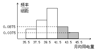 户居民去年的月均用电量(单位:kw/h),将所得数据整理后,画出频率分布直方图如下,其中直方图从左到右前