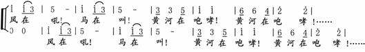 14.《黄河大合唱》是人民音乐家冼星海创作于抗战时期的一部合唱作品,其中的《保卫黄河》表现了抗日军民前仆后继、英勇杀敌的战斗场面。以下两个声部的旋律、节奏、歌词及演唱速度相同,但第二声部的开始晚于第一声部,具有此起彼伏的音乐效果。这种演唱形式叫做