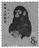 古老的生肖题材被搬上“国家名片”--邮票,我国邮电部于1980年发行了第一枚《庚申年》的特种邮票(见右图)。关于该邮票正确的描述应是