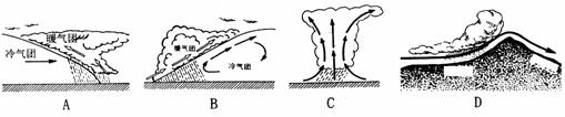27.一般形成暴风雪的天气系统是冷锋,下列表示冷锋的图示是