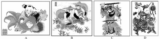 我国各地年画随时代发展呈现出多种风貌,题材逐渐贴近生活,表现方法更多地采用写实手法,下列各项与水乡生活比较接近的是( )