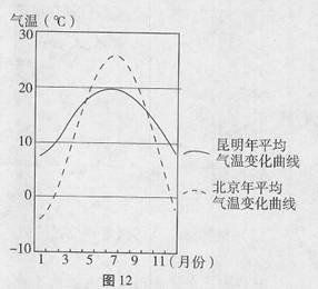 (1)据图12比较昆明和北京两地气温