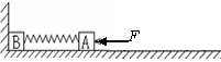 (2) (9分)如图所示,光滑水平面上,轻弹簧两端分别拴住质量均为m的小物块A和B,B物块靠着竖直墙壁。今用水平外力缓慢推A,使A、B间弹簧压缩,当压缩到弹簧的弹性势能为E时撤去此水平外力,让A和B在水平面上运动。求: