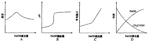 11.将氢氧化钠稀溶液滴加到醋酸稀溶液中,下列各图示意混合溶液有关量或性质的变化趋势,其中错误的是