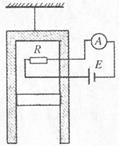 如图所示,带有活塞的气缸倒置悬挂在天花板上,缸内封闭一定质量的气体(不计气体的分子势能以及气缸壁和活塞间的摩擦,大气压强不变)。汽缸内有一个半导体热敏电阻R(随着温度的升高热敏电阻阻值减小)与气缸外的电源E和电流表A组成闭合电路,气缸和活塞具有良好的绝热性能。若发现电流表的读数缓慢增大,以下判断正确的是