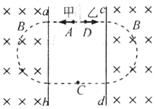 、方向垂直纸面向里的匀强磁场,虚线是由两个相同的半圆及和半圆相切的两条线段组成,甲、乙两带电体分别从图中的A、D两点以不同的初速度开始向两边运动(甲向左,乙向右),轨迹正好和虚线重合,它们在C点碰撞后结为一体向右运动,若整个过程中不计重力和电荷间的库仑力,则下面说法正确的是: