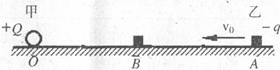 如图所示,一个电量为+Q的点电荷甲,固定在绝缘平面上的O点。另一个电量为-q质量为m的小滑块乙,从A点以初速度v。沿它们的连线向甲运动,运动到B点静止。已知静电力常量为k,小滑块乙与水平面间的动摩擦因数为