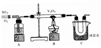 (14分)某研究性学习小组的同学为在实验室再现二氧化硫催化氧化的过程,并制取少量三氧化硫晶体,设计了如图所示的装置。已知三氧化硫遇水生成硫酸并放出大量热,容易形成酸雾。