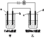 C.当电解一段时间后,将甲、乙两溶液混合,一定会产生蓝色沉淀