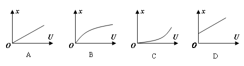 如图所示,一个静止的质量为m,带电量为+q的带电粒子(不计重力),经电压U加速后垂直进入磁感应强度为B的匀强磁场中,粒子打至P点,设OP=x,能正确反映x与U之间函数关系的x-U图如图中的( )
