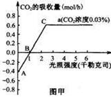 42.(8分)右图(甲)表示在最适光合温度下某植物光合作用速率与光照强度之间的关系 。