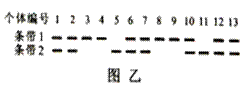 (2)已知系谱图和图乙的实验结果都是正确的,根据遗传定律分析图甲和图乙,发现该家系中有一个体的条带表现与其父母不符,该个体与其父母的编号分别是 、 和 。