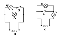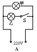 20.如图,家庭照明灯的一种按键开关上常有一个指示灯。在实际使用中发现:当开关闭合时,只有照明灯发光;开关断开时,照明灯熄灭,指示灯会发出微弱的光,以便夜间显示开关的位置。根据这种控制特性,能正确表示照明灯(甲)和指示灯(乙)连接的电路图是( )