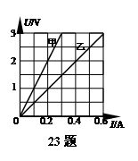 23.小娟在探究“电阻上的电流跟两端电压的关系”时,将记录整理的实验数据绘制成如图所示I-U关系图像。由图可得甲的电阻为_ Ω,这两个电阻串联后接在电压为9V的电源上,电路中的电流为 A;这两个电阻并联后接在9V电源上,干路中的电流为 A。