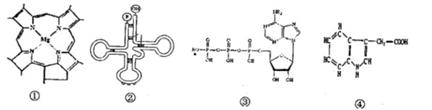 [解析]图中①是叶绿素,②是tRNA,③是ATP,④是生长素,A,只存在于植物细胞的有①和④;B,②含有的是反密码子,密码子存在与mRNA中;C,①可通过光合作用产生ATP,但植物还可以通过呼吸作用产生ATP。