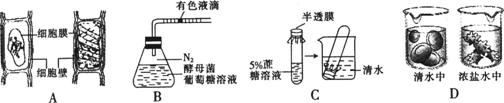 萝卜变软,凹槽中水分增多。下列图示的实验与此实验原理差异最大的是( )
