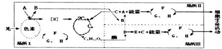 23.(2010广东佛山教学质检)下图表示某植物叶肉细胞内发生的生理过程,其中A至H代表物质,据图回答: