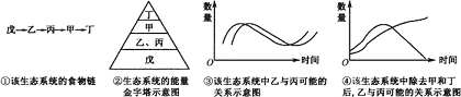 [答案]D[解析]由表中数据知,戊为生产者,乙和丙作初级消费者,甲作次级消费者,丁作三级消费者,①错;乙和丙同时作初级消费者,为竞争关系,而③中曲线为捕食关系,错。