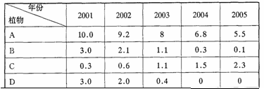 连续五年的调查,调查的结果如下表所示(单位:株/m2 )。