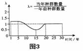 (4)上图3是调查小组同学从当地主管部门获得的某物种种群数量的变化图,据此分析该种群在30年中种群数量最少的是第 年,第20-30间种群的增长率为 。