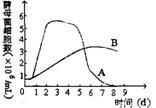 (2)利用计数板可在显微镜下对微生物细胞进行直接计数。定期对培养液中的酵母菌进行计数,绘制出A、B组酵母菌细胞数目变化曲线如右图所示:在C组培养液中,限制种群数量增长的主要因素是________