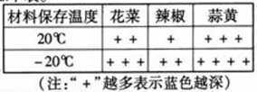 材料处理:称取新鲜的花菜、辣椒和蒜黄各2份.每份l0 g。剪碎后分成两组,一组置于20℃、另一组置于一20℃条件下保存24 h。