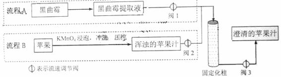 的溶液浸泡苹果的目的是______①___________。黑曲霉提取液中含有的_____②____可水解果胶,从而使果汁澄清。固定化柱中填充的石英砂通过____③______方式将酶固定化,酶被固定在用蒸馏水洗涤固定化柱是为了除去________④_________。