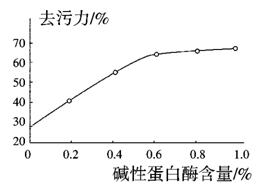 (1)为了探究某加酶洗衣粉中碱性蛋白酶含量与洗涤效果关系,某同学通过实验获得右图所示的结果。由图可知,加酶洗衣粉中碱性蛋白酶的最适含量是 %,本实验的自变量是 。