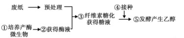 10. (2010·名校模拟)现在大力提倡无纸化办公,但是每年仍然不可避免的产生了大量废纸,其主要成分是木质纤维,人类正努力将其转化为一种新的资源--乙醇。下图是工业上利用微生物由纤维素生产乙醇的基本工作流程,请回答相关问题: