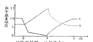 24.(6分)将一只成熟的小白鼠的甲状腺进行手术摘除,从第三周开始每天注射激素A,结果激素A和激素B在血液中浓度变化如下图所示,请分析回答: