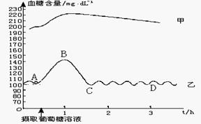 (4)曲线CD段表示乙处在饥饿状态时的血糖浓度,此时维持血糖浓度相对稳定的代谢途径主要是______ 。