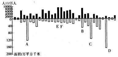 读我国各省级行政单位的人口与面积柱状图,回答以下2题。