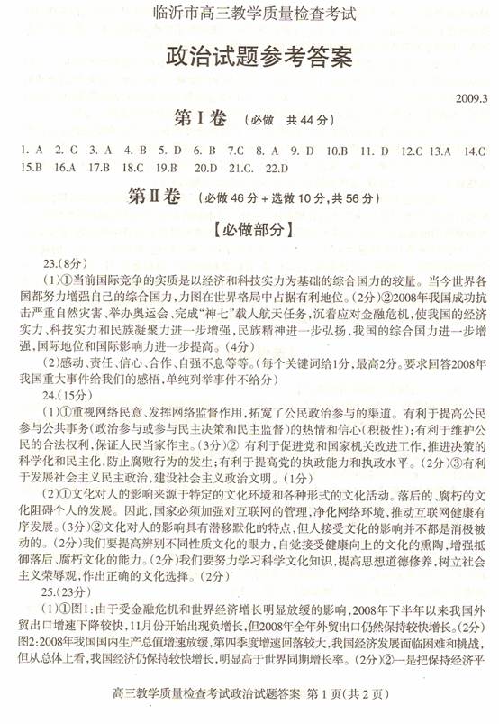 23.(8分)刚刚过去的2008 年, 是党和国家发展进程中很不寻常、很不, 平凡的一年。面对严峻形势, 我们党团结带领全国各族人民同心同德、顽强拼搏, 成功夺取抗击南方部分地区严重低温雨雪冰冻灾害和四川汶川特大地震灾害斗争的重大胜利, 成功举办北京奥运会、残奥会, 成功完成神舟七号载人航天飞行任务, 沉着应对国际金融危机冲击, 社会主义现代化建设取得新的显著成就, 我国国际地位和国际影响力进一步提高。