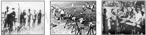 农民在分配土地 人民公社社员在集体劳动 农民领取生产承包合同书