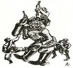 23.[2010·广西梧州第二次模拟考试]下图是1938年,江苏画家刘元创作的漫画,同年发表在《抗日漫画》第十期上。此画表达的宗旨是