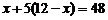 8.小悦买书需用48元钱,付款时恰好用了1元和5元的纸币共12张.设所用的1元纸币为x张,根据题意,下面所列方程正确的是