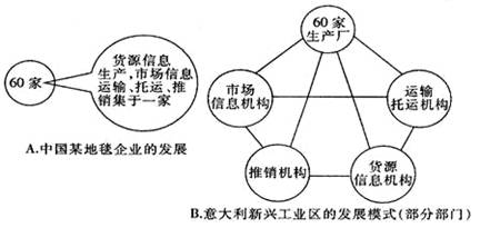 (3)从上述两幅图可以看出,我国某县乡镇企业的发展与意大利新兴工业区的发展模式不同的是 。