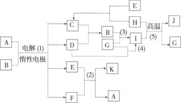 27.(16分)A、B、C、D、E、F、G、H、J、K等为中学化学常见的物质,其中C、D为非金属单质,F、G、H为金属单质,A的稀溶液呈蓝色,常温下B为无色无味的液体,K是一种污染大气的气体。物质之间的转化关系如图所示,部分反应物、产物及反应条件未标出。