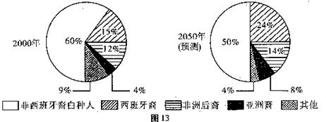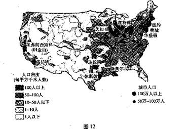 (1) 根据材料一、二、三,简要概括美国人口特点。(12分)
